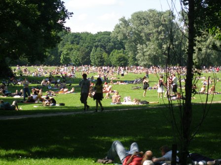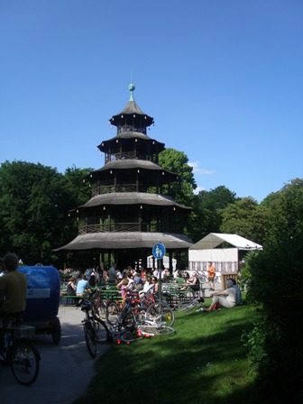 I ended up in the “English garden”, as it is called, a large park in the heart of the city where everybody seemed to converge on a Sunday afternoon. I asked two nice ladies for the way to the next beer garden (show me the way to the next whiskey bar) and they pointed me to the beer garden at the Chinese pagoda.