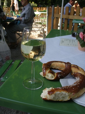 I would have tasted the rest of Roman Sauer’s wines on offer but that was just too difficult in the heat. The sun was shining on me and the three large glasses of wine had their own effect. The Bavarian music was entertaining, the beer garden visitors were loud and cheerful, and somehow I made my way back to the small hotel in Munich-Riem.