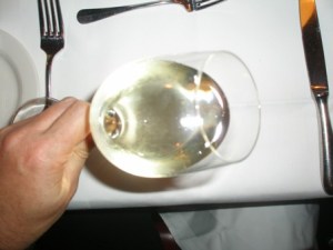 The dinner was utterly enjoyable. I was able to take a quick shot of the Riesling in my glass. Isn’t it beautiful, this fresh, light colour promises just the best German Riesling has to offer. I let any other Riesling wine “get warm along the roadside”, as we say, for the German stuff (ok, its exaggerated, I know. I might make an exception for some Alsation and some Austrian Rieslings). It was a splendid evening and I highly recommend a visit to “Alte Fischerhütte”.