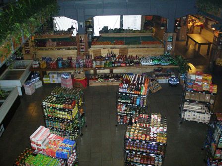 The inside of the Gourmet Garage in Jakarta with various shops on the ground floor and the restaurants upstairs.