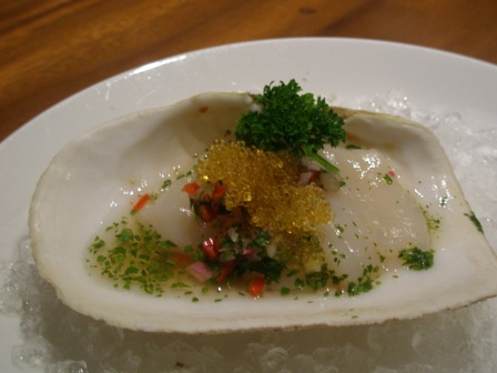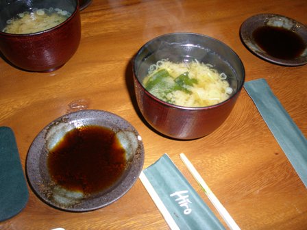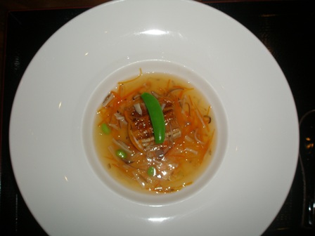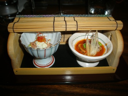 The three had invited us to spend our last Friday night in Jakarta among friends. They talked us into ordering the four-course Japanese meal. Depending on the day, the chef changes the composition of the dishes of the four courses. Surprise, surprise but since we like adventures, we were eager to wait for things to come. Flo and Nelly ordered other dishes from the Japanese menu. There are two more menus to choose from at Gourmet Garage, a Western menu and an Indonesian menu.