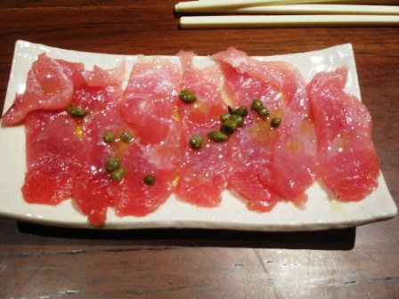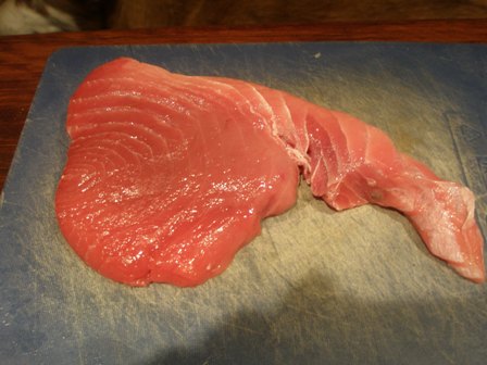 But let us start with the food. Out of this fine piece of tuna below, Timo made a delicious sashimi (second picture below). After that we ha another entrée, garlic prawns. The fist main dish was mussels with chorizo sausage chunks followed by some fish (white-head for the kids, and tuna). We were not in the position to eat another main course, although there was beef and various other meats waiting for us. What a wonderful feast that was. Delicious stuff.