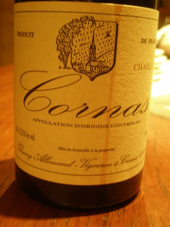 This wine is very powerful and just amazing. Thierry Allemand, the son of a factory worker and not blessed with a family history of wine making, is producing two blends, Les Chaillots and Reynard both from Cornas. The wines are made from low yielding, old vines. Thierry is one of the “wine gods”, the masters and spin doctors, producing “cult” wines. It has the “burned rubber” taste which needs some time to get used to in the beginning.