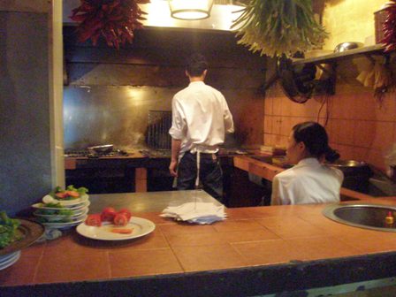 “Quan An Ngon” traditional Vietnamese restaurant has a large garden part where one can sit outside under tarpaulins but also the inner part of the restaurant, housed in a colonial style building is very appealing and attractive. The cooking is conducted in a kind of roofed “out houses” surrounding the courtyard. I could not resist to take some photos.