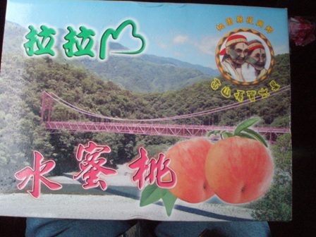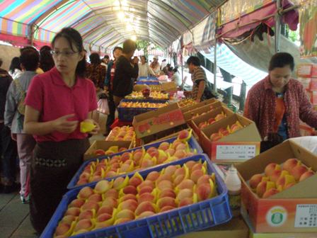 We were heading to Fuxing district on La La mountain, near Daxi county just about a three hours drive from Taoyuan. We all met at the shrine to the memory of former president Jiang Jie-she (Chiang Kaicheck) in Daxi. There was also a fruit and vegetable market and this is were Mr. Chen Long-gui has a stall to sell his peaches. His daughter Ajoan was already waiting for us and off we went.