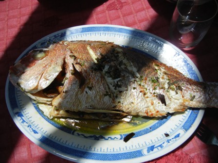 My friend Brett Travis had given us the above red snapper before leaving on a fishing trip to Samoa. This was a wonderful opportunity for another wonderful lunch at our vineyard. We prepared the fish for a six persons meal.