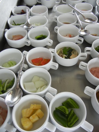Because of the special circumstances of our cooking class, we had only two flames for the four of us. As a consequence we had to do the cooking in turns. Margit and Charlotte were the first to start, followed by Lucy and me.