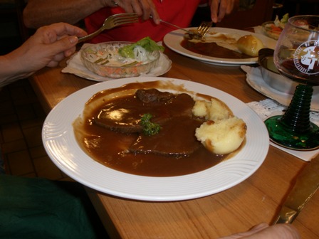 Weinhaus Spielberg is a traditional country inn where solid German food and good local wines are served. We ordered some local specialities, especially typical Franconian dishes. The two pictures below might give you an idea what food I have in mind. We had the house wine with the food, a very refreshing, young and delicious Silvaner.