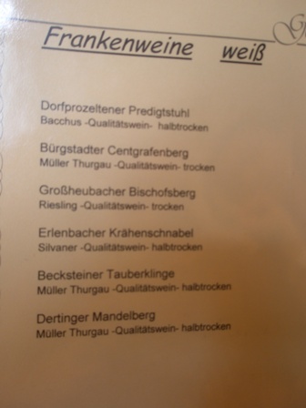 The wine list, here the section with local white wines only, was dominated by local wines from Franconia. Unfortunately, we could not taste them all. I guess we have to come back for some more sampling.
