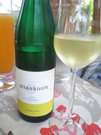 The wine, however, was my department. Thanks to Mathias and Beatrix we still had a bottle of ‘2007 altenkirch Rieling, trocken’ by Friedrich Altenkirch in Lorch, Rheingau, Germany.