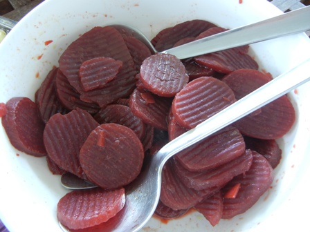 After the main course we had a warm spinach salad. The recipe is also in the above cookbook and is called, “Baby Greens with Caper Vinaigrette”. The caper vinaigrette is similar to the marinade, just that no olives and no garlic is added. It goes as follows: