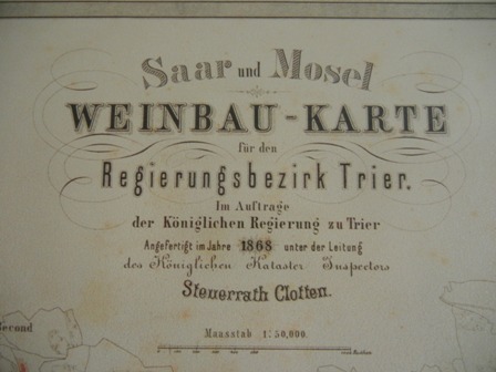 The map shows the quality of the terroir in different shades of red. The more intense the red is, the better the quality and the higher the tax category. The Royal Prussian government had produced this map in order to streamline their tax collection.
