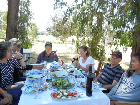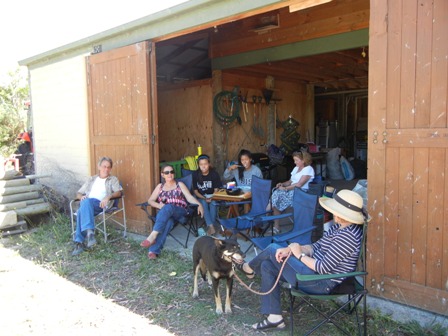 After the meal, we had to move into the shade. We opened the shed doors and sat in the cool of the mud brick building. The sampling of wine did not stop, of course. What a jolly good day that was.