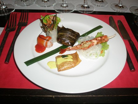 The main dish named ‘Bo Nuong Hed Hom ca Hoi Mojo’ consisted of grilled tender loin with mushroom cheese and stir fried Norwegian salmon with Mojo.