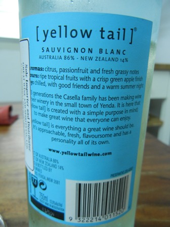 We knew what we were in for. I was not surprised that this wine by yellow tail was of low quality. The Shiraz from the same series, I would call “very drinkable”. The Sauvignon Blanc is also “drinkable”, however, I would omit the word “very”. Anyway.
