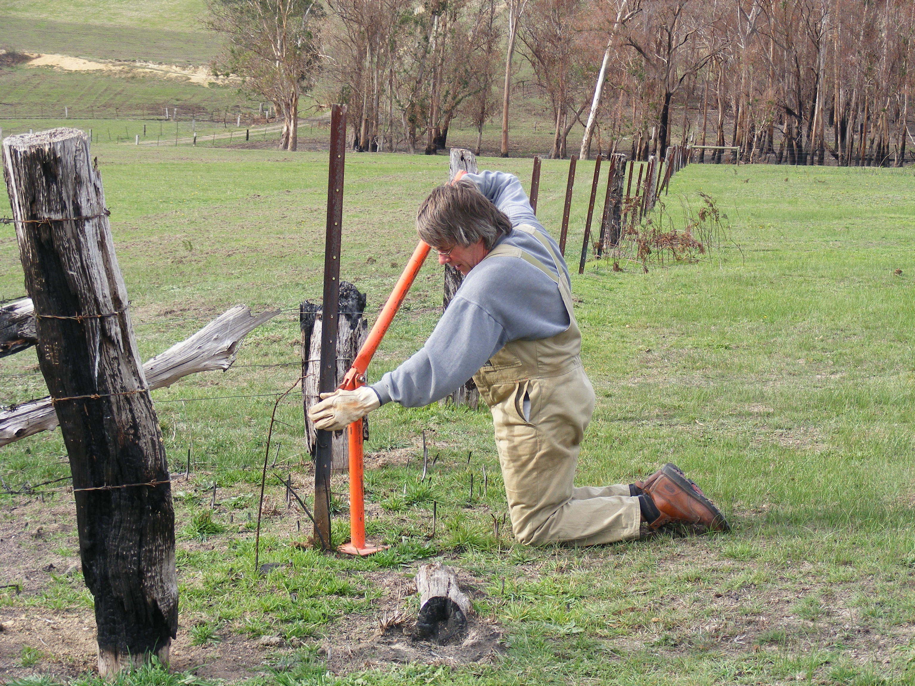 The bush fires of February 9th, 2009 almost wiped us out. We were narrowly saved by some firecrew from New South Wales and our local fire fighters. The tweo pictures below were taken by Michael, my brother-in-law after the fires during the “re-fencing” efforts.